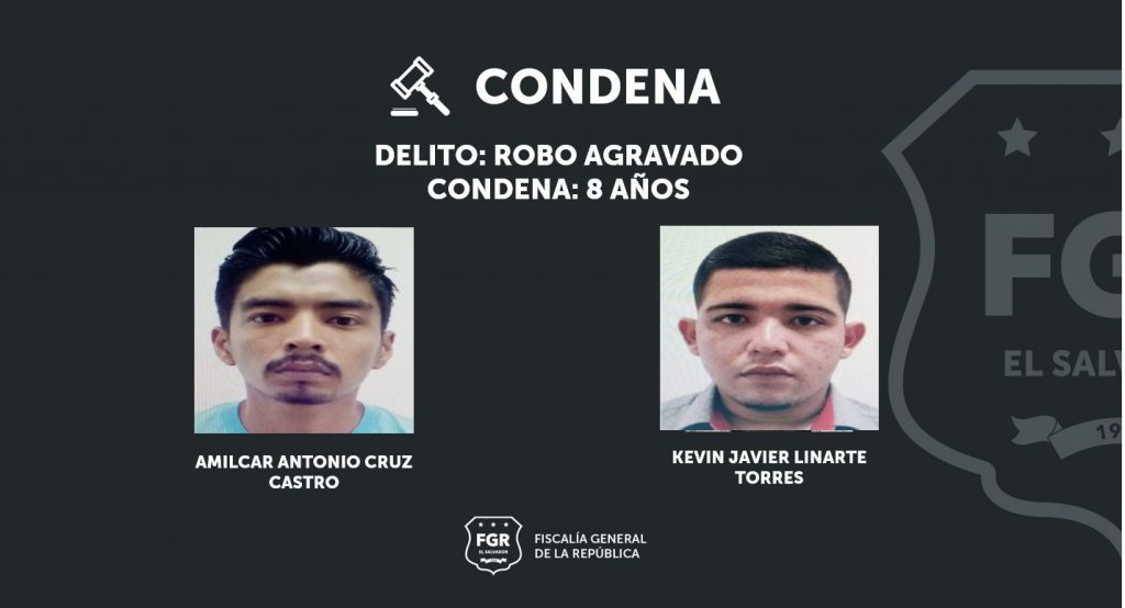 Cojutepeque, Cuscatlán. Gracias a las diligencias probatorias presentadas por los fiscales. se logró una sentencia condenatoria de ocho años de prisión en contra de dos sujetos por el delito de robo agravado.