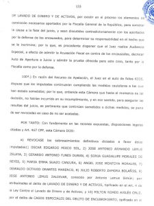Y tras un amplio desarrollo de la resolución de 134 páginas, la misma concluye: “a) REVOCASE los sobreseimientos definitivos dictados a favor de los imputados 1) Óscar Edgardo Mixco Sol, 2) José Antonio Armando Lemus Zelaya, 3) Gerardo Antonio Funes Durán, 4) Sonia Guadalupe Morales de Reyes, 5) María Emma Suazo Canjura, 6) Ángel José Montoya Morales, 7) Oswaldo Octavio Orantes Marenco, 8) Julio Roberto Zamora Bolaños, 9) José Antonio Lemus Zaldívar”, todos acusados por Lavado de dinero y activos y “10) Milton Romeo Avilés Cruz, por el delito de Casos especiales del delito de Encubrimiento”.