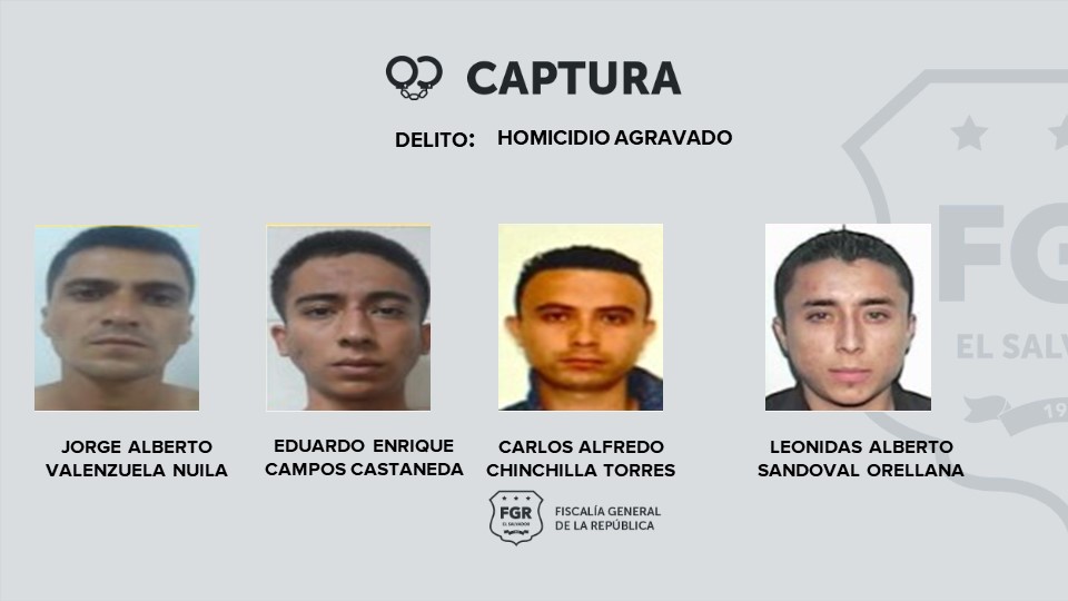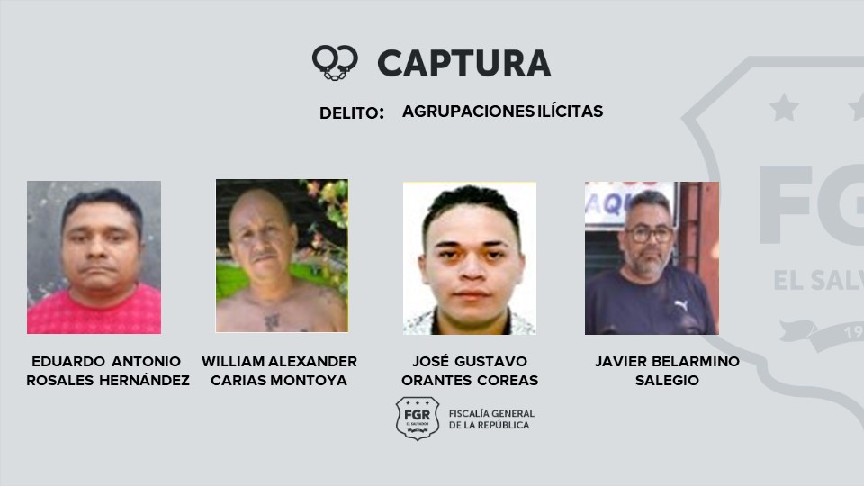 Entre los detenidos de este caso son: Eduardo Antonio Rosales Hernández, William Alexander Carias Montoya, José Gustavo Orantes Coreas, Javier Belarmino Salegio, Israel Sibrian Meléndez y José Remberto Guardado Fuentes, a quienes se les atribuyen los delitos de hurto agravado, receptación y agrupaciones ilícitas.