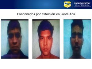 Santa Ana. Fiscales de la Unidad de Patrimonio Privado y Propiedad Intelectual de la sede de Santa Ana, lograron la sentencia condenatoria contra tres miembros de una estructura terrorista, quienes deberán purgar penas de 11 y 20 años en la cárcel, tras ser encontrados culpables por Extorsión Agravada, delito previsto y sancionada en los Artículos 2 y 3, numerales 1 y 7, de la Ley Especial contra el Delito de Extorsión.
