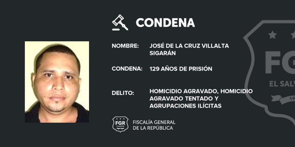 También José de la Cruz Villalta Sigarán recibió una sentencia de 129 años de prisión por 6 Homicidios Agravados.