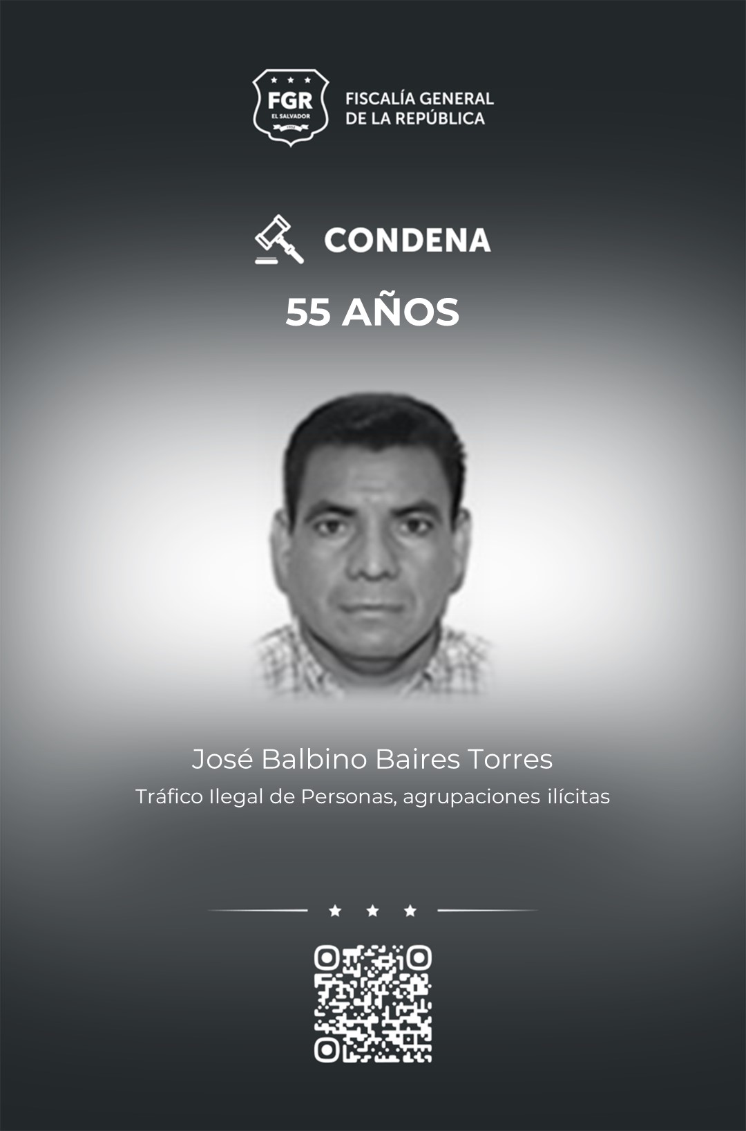 Por esos mismos delitos fue condenado a 55 años de prisión José Balbino Baires Torres, a 16 Jorge Humberto Meza Cortez, Mario Adalberto Escobar Zaldaña, José Casimiro Jiménez Gómez y Osmín Adonay Sánchez.