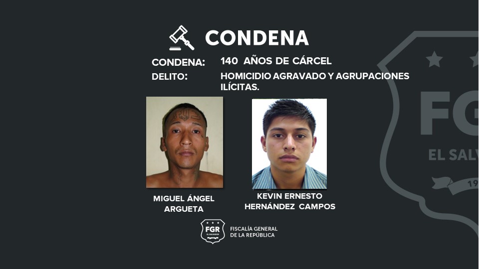 Mientras que Miguel Ángel Argueta, alias el cristo negro, y Kevin Ernesto Hernández Campos, alias el travieso de la francia (ambos presente), fueron condenados a 140 años de cárcel por agrupaciones ilícitas y 5 homicidios agravados.