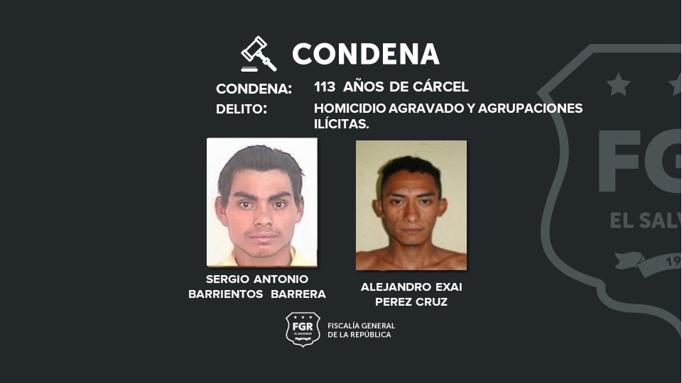 Juan Carlos Vásquez Coreas, alias el wisper de la soria, y José Ulises Gaitán del Cid, alias caro de niño (ambos presente), fueron condenados a 86 años de cárcel por 3 homicidios agravados y agrupaciones ilícitas.