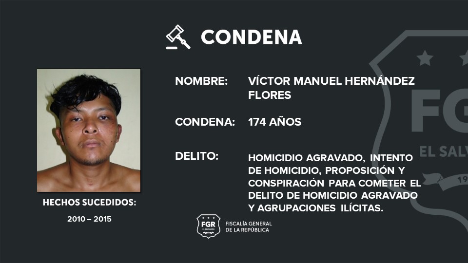 Víctor Manuel Hernández Flores, alias el saiko (presente), fue sentenciado a 174 años de cárcel por 5 homicidios agravados, 2 intentos de homicidios, proposición y conspiración para cometer el delito de homicidio agravado y agrupaciones ilícitas.