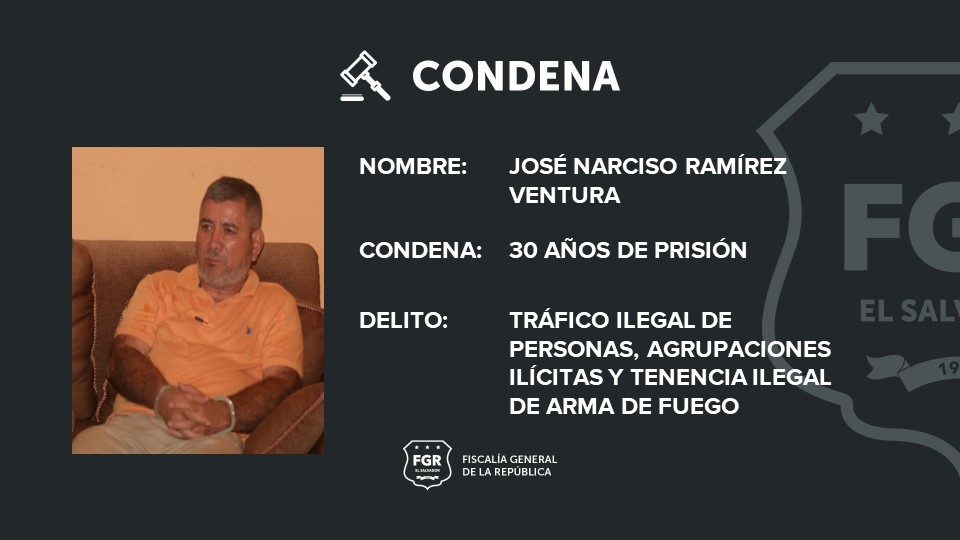 Santa Ana. El exalcalde de San Francisco Menéndez, en Ahuachapán, José Narciso Ramírez Ventura y 22 personas más, que formaban una estructura delincuencial transnacional dedicada al tráfico ilegal de personas fueron condenadas a penas de prisión hasta de 76 años.