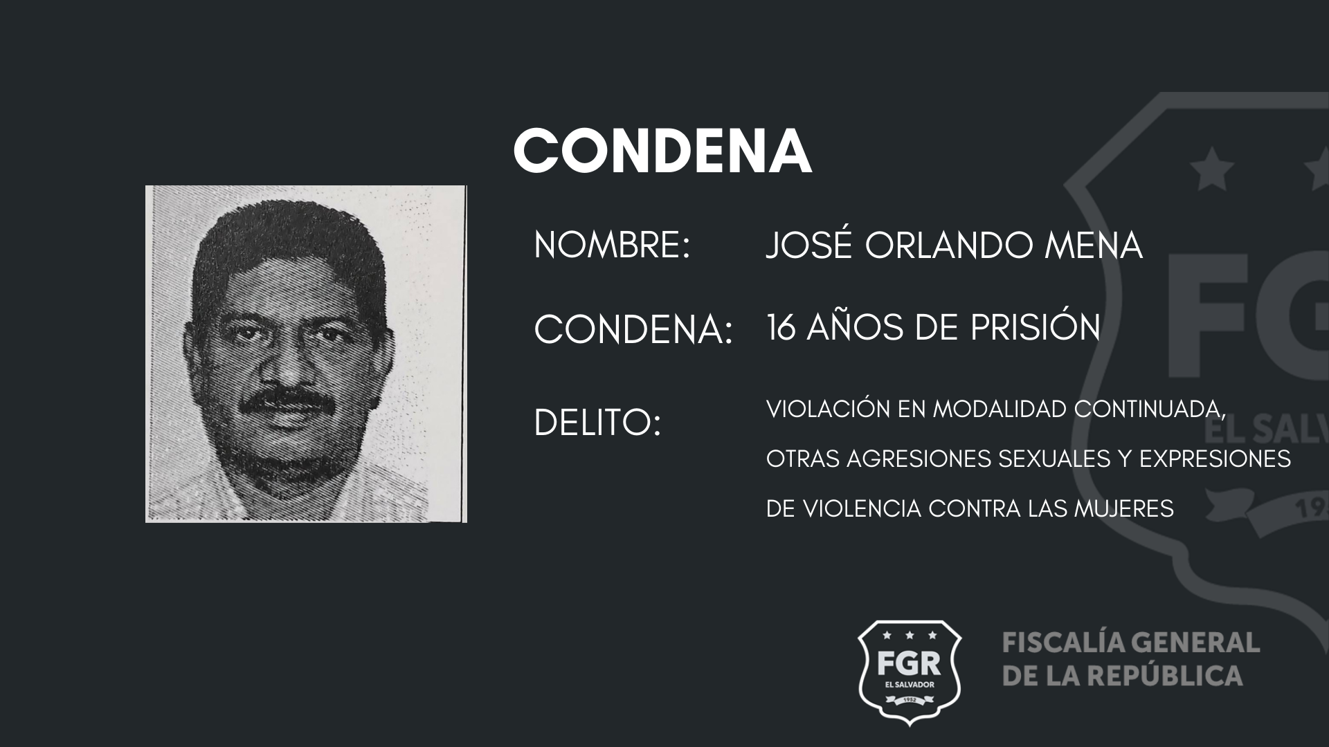 La Fiscalía General de la República continúa persiguiendo a los que cometen delitos sexuales y una muestra más es que la Unidad de Atención Especializada para La Mujer, Niñez y Adolescencia de Santa Ana, logró demostrar que el exalcalde Orlando Mena cometió los delitos de violación en modalidad continuada, otras agresiones sexuales y expresiones de violencia contra las mujeres.