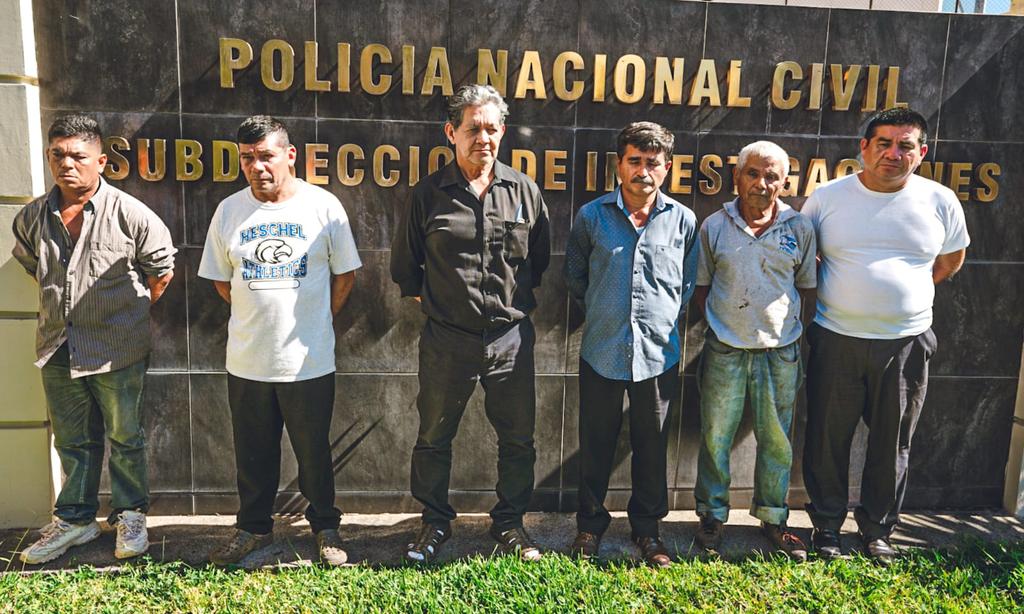 Los procesados presentes son Fidel Dolores Recinos Alas, exdiputado del FMLN; Saúl Agustín Rivas Ortega, Teododoro Antonio Pacheco, Miguel Ángel Gámez, Pedro Antonio Rivas Laínez y Alejandro Laínez García.