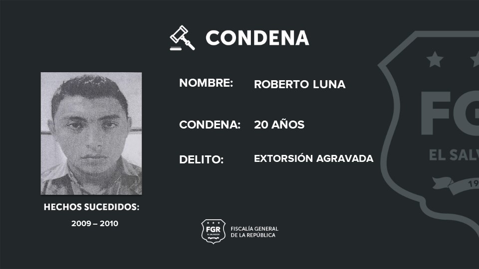 Las pruebas presentadas en juicio por la Fiscalía General de la República (FGR) fueron contundentes y demostraron al Tribunal Primero de Sentencia de San Miguel, que Luna fue el responsable de recibir el dinero de la extorsión.