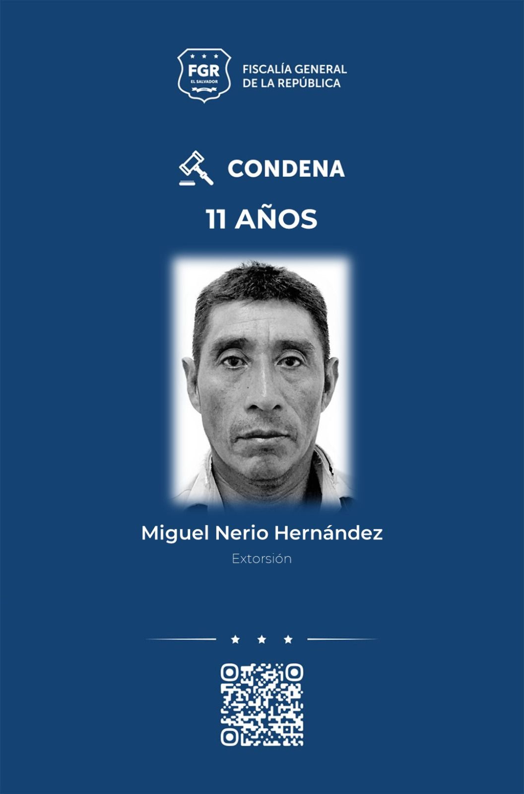 Santa Tecla, La Libertad Sur. La Fiscalía General de la República (FGR) logró once años de prisión para Miguel Nerio Hernández por haber extorsionado a una persona en Santa Tecla, durante septiembre del 2023.