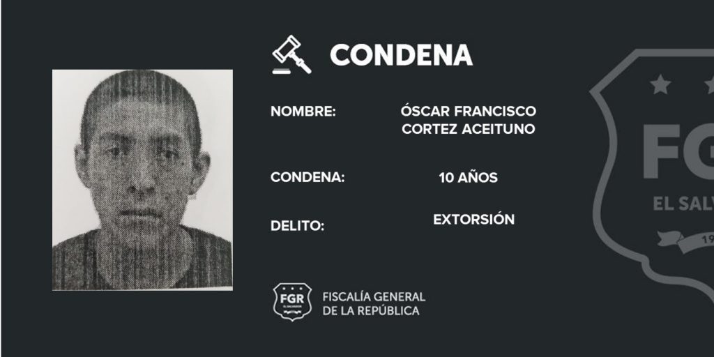 Santa Tecla. Fiscales de la Unidad de Patrimonio Privado y Propiedad Intelectual (UDPP), de la Oficina de Zaragoza, lograron que se les impusiera 10 años de prisión a dos extorsionistas miembros de la pandilla MS. De acuerdo a la investigación fiscal, los sujetos son identificados como: Óscar Francisco Cortez Aceituno, alias “Callejero o Clandestino” y Melvin Geovanny Contreras Meléndez, alias “yiyo”.