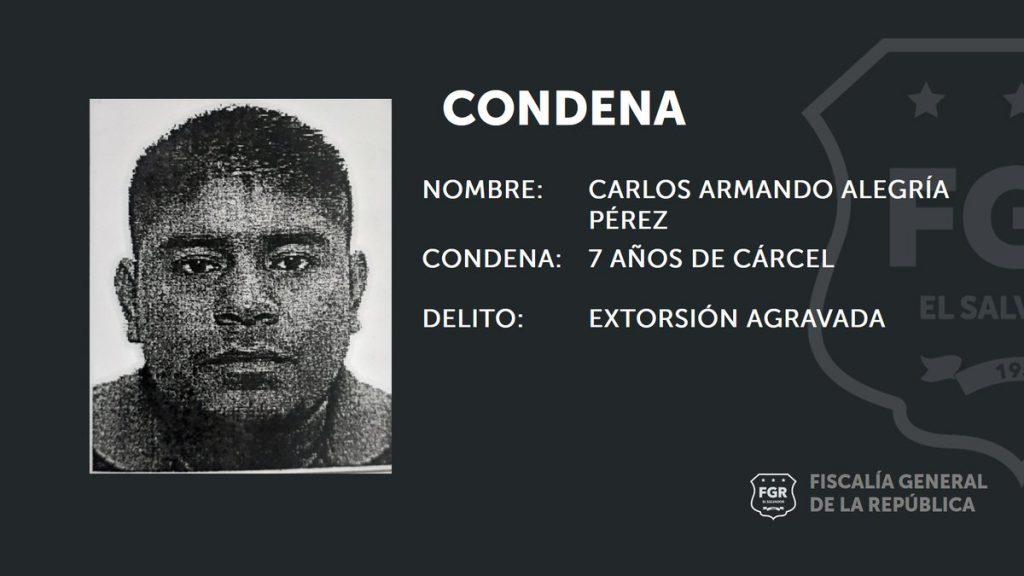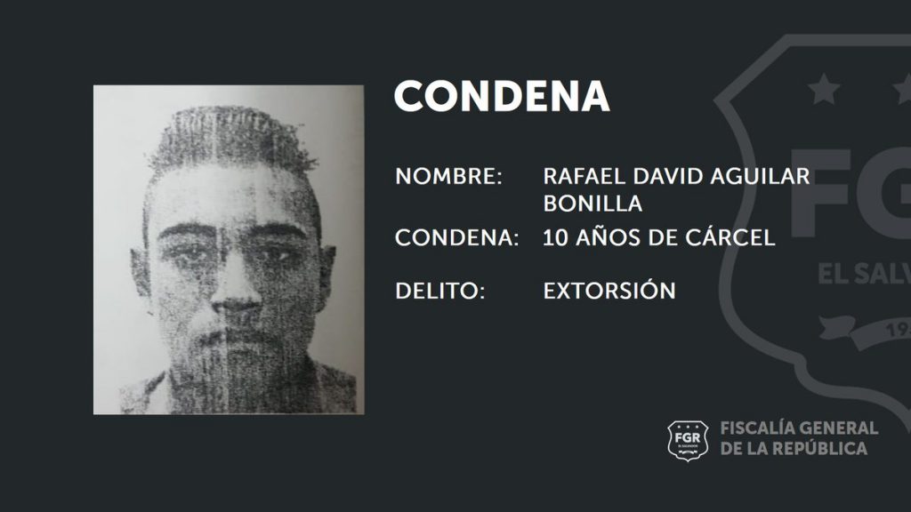 Así lo dio a conocer hoy la Unidad de Patrimonio Privado de la Fiscalía de Mejicanos, que confirmó que el primero de los procesos finalizado con fallo condenatorio es el de Rafael David Aguilar Bonilla, quien fue acusado por el delito de Extorsión Agravada, en perjuicio de la víctima protegida con clave “Junio”.