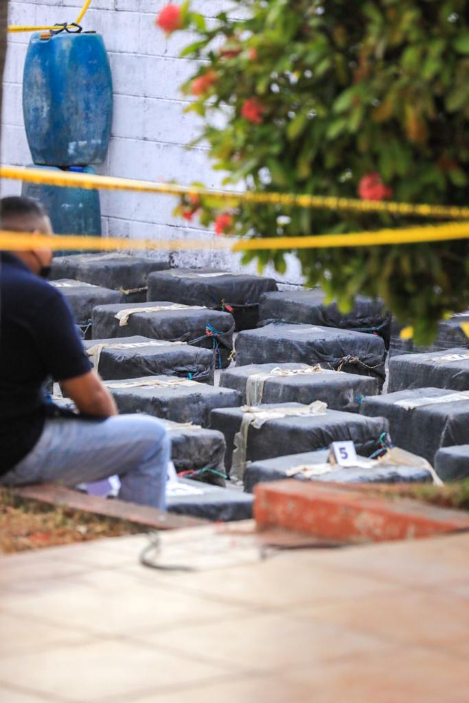 San Luis La Herradura. Los siete extranjeros que fueron capturados con más de 4 mil kilos de cocaína continuarán detenidos mientras el proceso penal en su contra continúa. Todos son procesados por el delito de Tráfico Ilícito de Drogas.