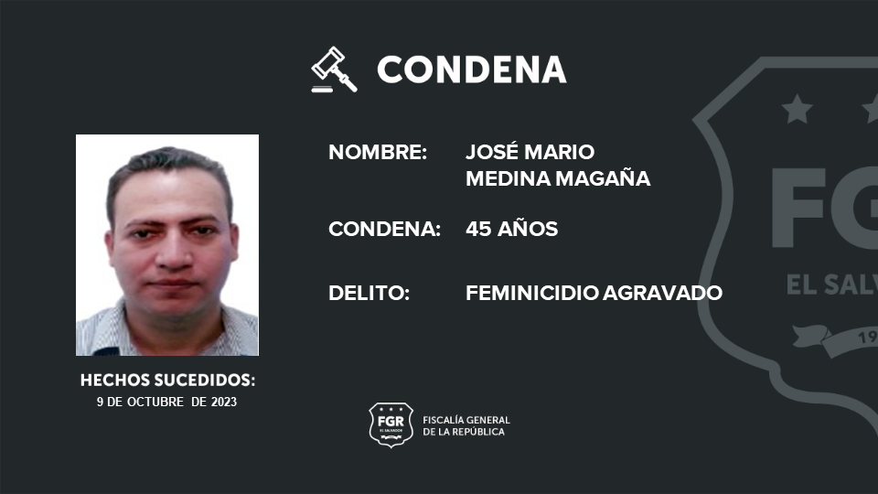 Santa Ana. La Fiscalía General de la República (FGR) hizo posible que José Mario Medina Magaña fuera sentenciado a 45 años de prisión por el feminicidio agravado en perjuicio de su expareja.
