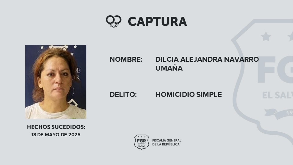 Navarro Umaña es acusada del homicidio simple contra su pareja de 39 años y otro hombre de 46. El crimen ocurrió la noche del 18 de mayo de este año en el polígono A, de la colonia Vía Altos de la Satélite, de la ciudad de San Miguel.
