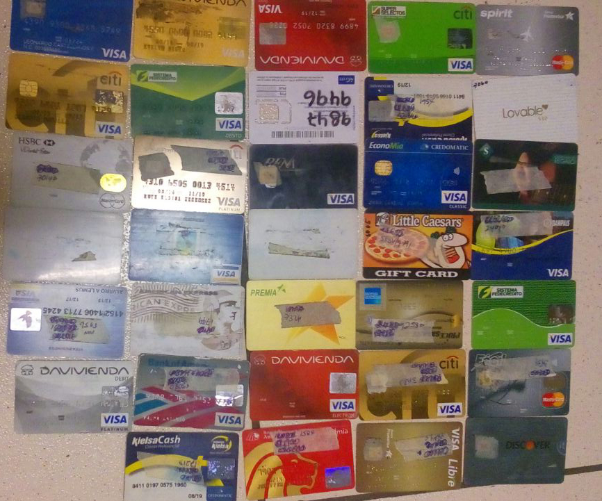 La acusada fue detenida el pasado lunes en un centro comercial al poniente de Santa Tecla. Al momento de su detención se le incautó vehículo marca BMW, año 2007, color negro, un celular, $ 6,798.00 y 2, 279.00 lempiras,  33 tarjetas de crédito incluido de débito de diferentes bancos nacionales y extranjeros, 48 baucher, y documentos personales hondureños y  tres libretas de ahorro, el monto total de los incautado y las transacciones registradas suman 11, 214,70 dólares.