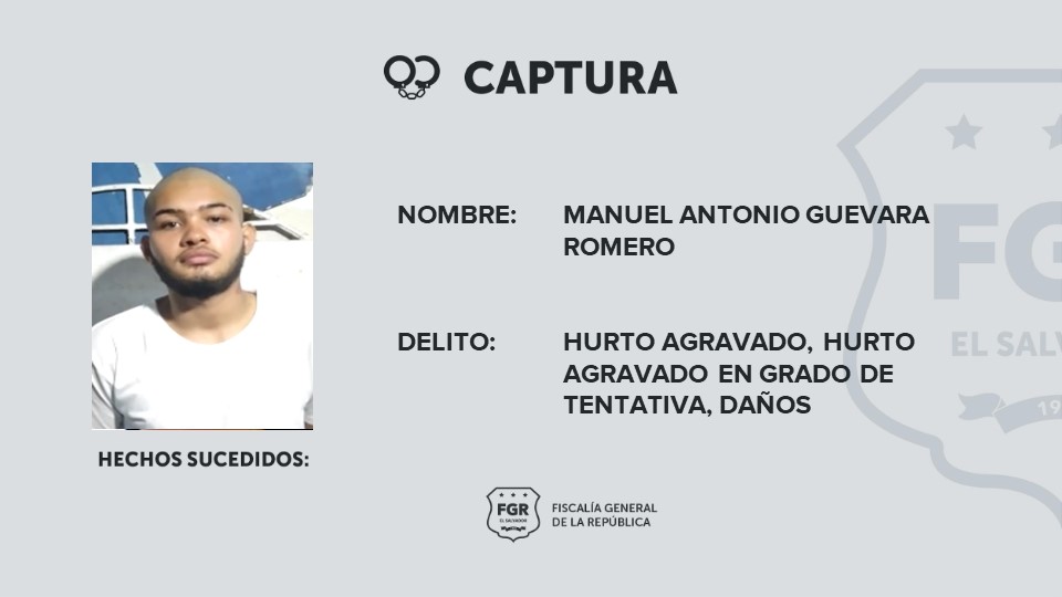 Entre los reos intimados están Manuel Antonio Guevara Romero, a quien se le procesará por hurto agravado, hurto agravado en grado de tentativa y daños en perjuicio de 11 víctimas; a René Mauricio Gómez Chávez, la FGR le acumuló un robo agravado, hurto agravado en perjuicio de 14 víctimas, un hurto agravado en grado de tentativa y un caso de daño agravado.