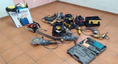 Las detenciones fueron efectivas en diferentes distritos de Morazán y les incautaron dos motocicletas, una mochila de fumigar, una motosierra, seis pulidoras, una sierra eléctrica, tres taladros, un arma de fuego, una laptop y otros.