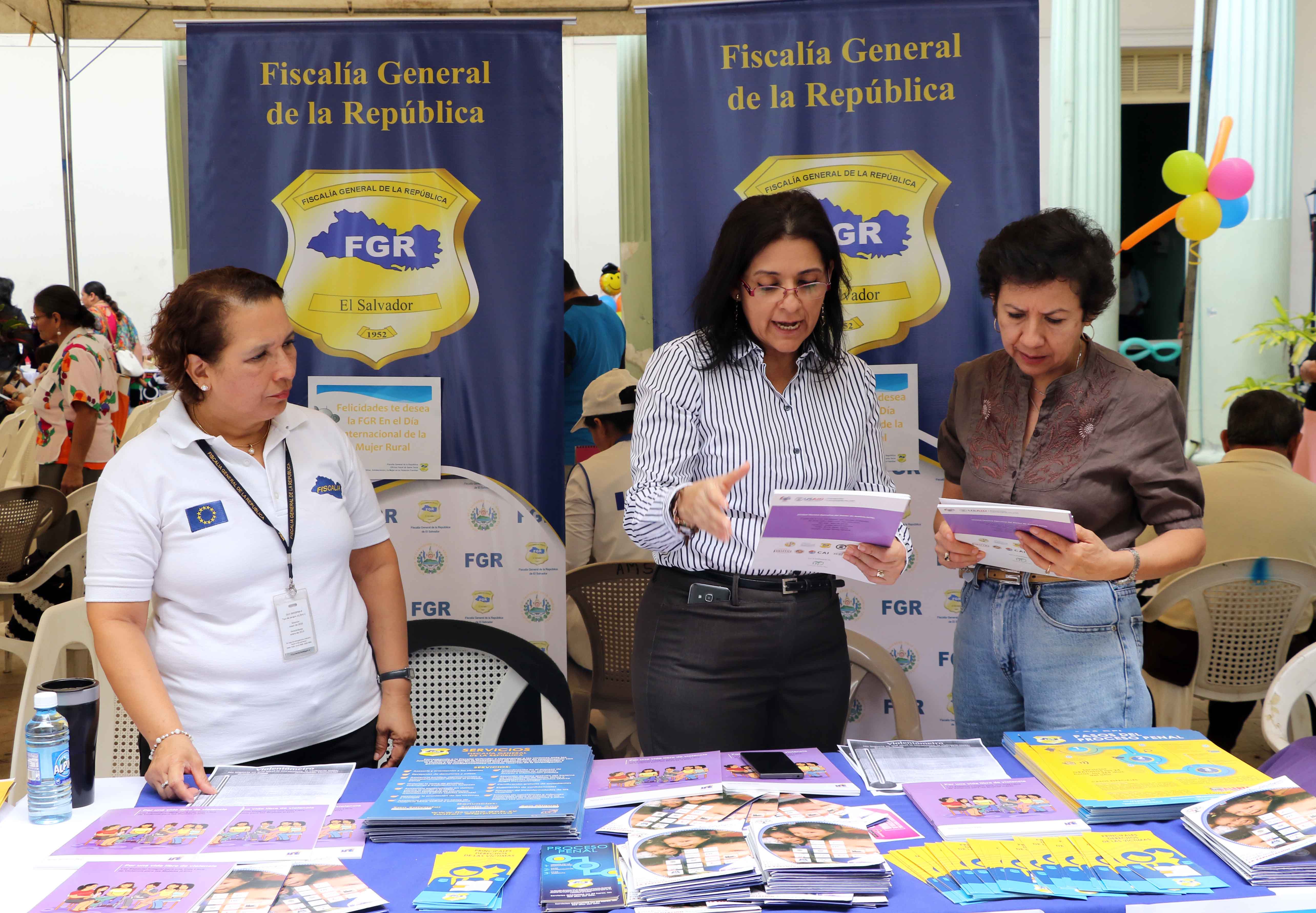 La Libertad. La Unidad Delitos Relativos a la Niñez, Adolescencia y la Mujer en su Relación Familiar de la oficina fiscal de Santa Tecla, participó esta mañana en las actividades de conmemoración del Día Internacional de la Mujer Rural, donde personal fiscal entregó material de orientación, Leyes y documentos relacionados a los derechos de la mujer.