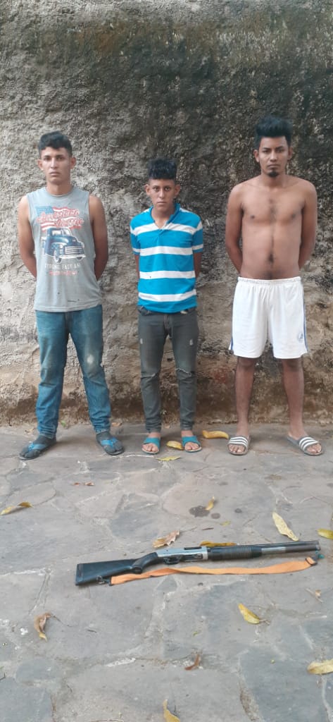 Los incriminados fueron detenidos en el caserío La Mora, del cantón El Zapote, del municipio de Suchitoto, en el departamento de Cuscatlán; y durante las mismas se realizaron registros en las viviendas de los imputados, donde se incautó una escopeta calibre 12.