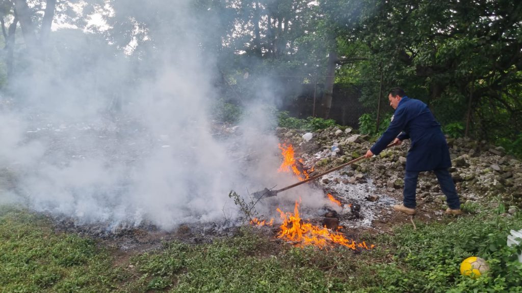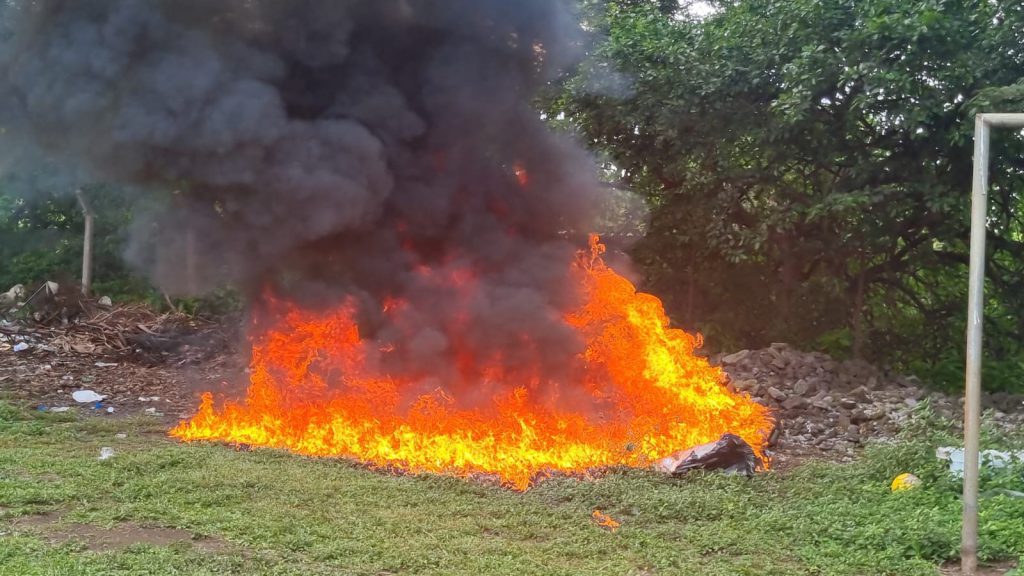 La quema del ilícito se realizó en la cancha de fútbol del Cuerpo de Bomberos, seccional San Miguel.