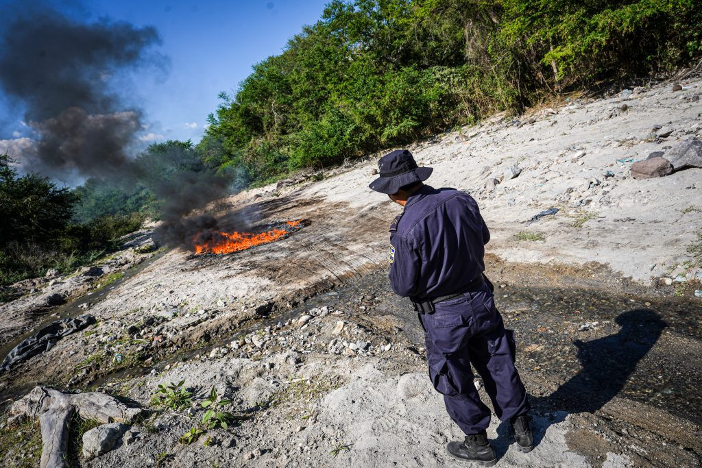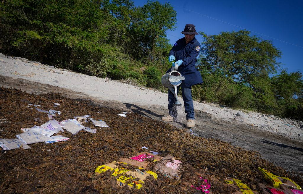 LA FGR_SV en coordinación con la División Antinarcóticos de la @PNCSV procedieron a destruir diferentes tipos de droga, incautada en 59 procedimientos ejecutados en San Salvador y Santa Ana.