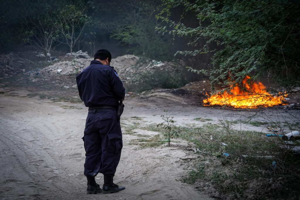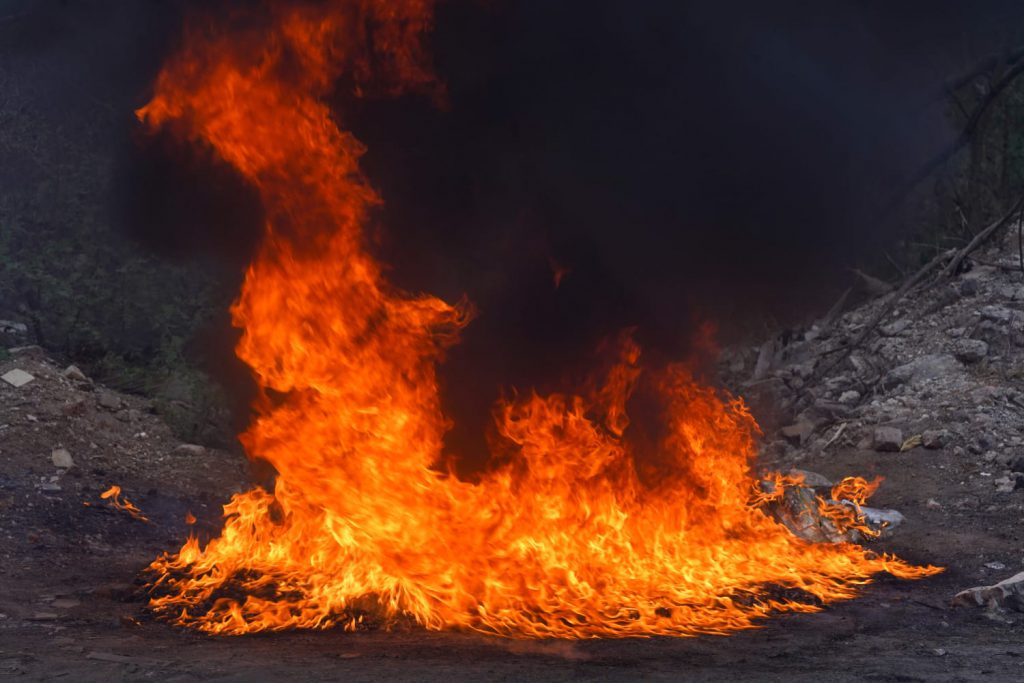 La quema realizada en Changallo, Ilopango se realizó con el apoyo de la División Antinarcóticos y la verificación respectiva de la Dirección Nacional de Medicamentos.