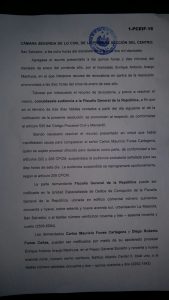 Es así como, la Cámara en mención, ha otorgado un plazo de 72 horas para emitir opinión sobre el recurso presentado. “Tiénese por interpuesto el recurso de revocatoria, y previo a resolver el mismo , concédacele audiencia a la Fiscalía General de la República, a fin de que en el término de tres días hábiles contados a partir del día siguiente de la notificación de la presente resolución, se pronuncien al respecto …”, reza literalmente la notificación.