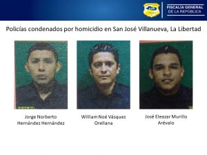 La Libertad. Tras el desarrollo de un tercer juicio, la Fiscalía General de la República, FGR, logró probar la participación de tres agentes de la Policía Nacional Civil, PNC, en los homicidios de igual número de víctimas. Hecho sucedido en el año 2017 en Caserío Espíritu Santo, municipio de San José Villanueva, departamento de La Libertad.