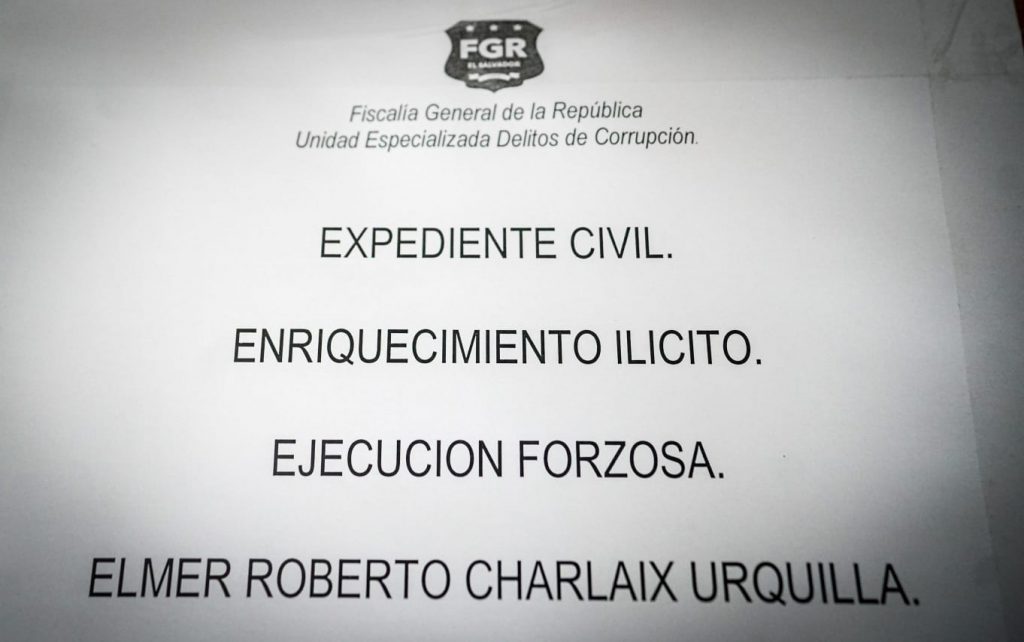 San Salvador. La Fiscalía General de la República solicitó que Elmer Charlaix Urquilla, exsecretario privado de la presidencia de Elías Antonio Saca durante el período 2004-2009, haga efectivo el pago de $710,339.19; monto al que fue sentenciado a pagar en el 2018 en un juicio civil, tras ser encontrado culpable del delito de Enriquecimiento Ilícito.