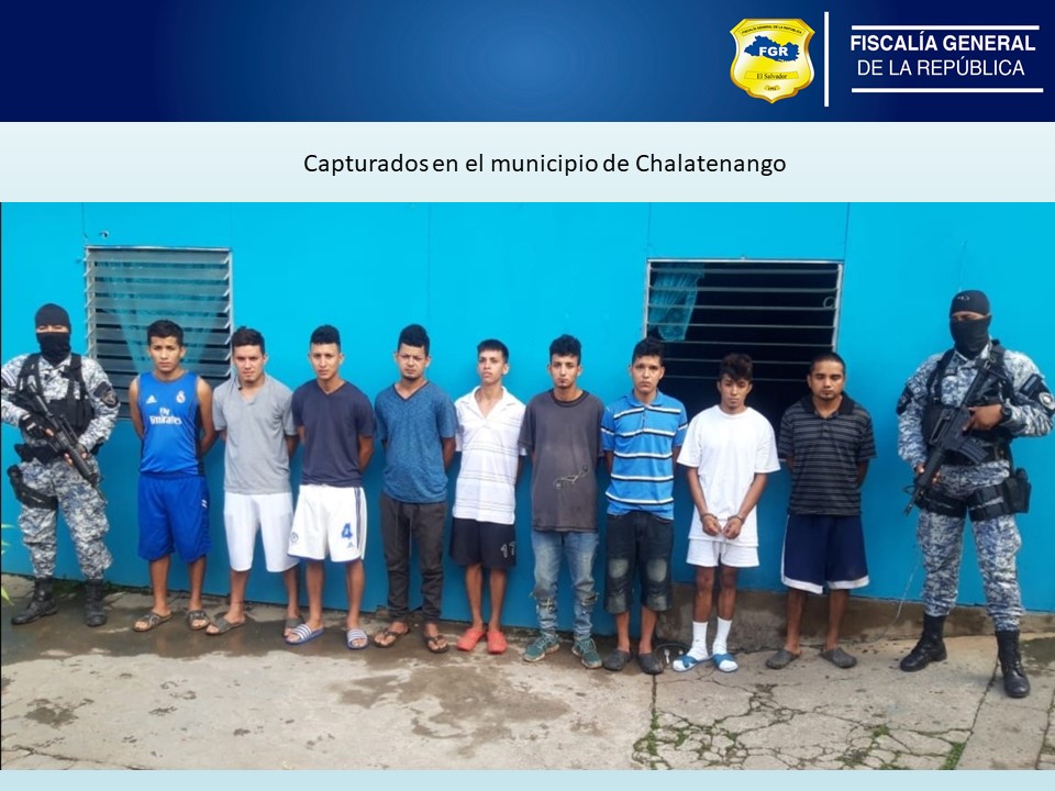 En Chalatenango se giraron 35 órdenes administrativas de detención de las cuales se han logrado hacer efectivas 19 capturas en los municipios de San Miguel de Mercedes y Chalatenango, contra estructuras terroristas de la MS, los cuales están vinculados en los delitos de Extorsión, Siembra y Cultivo; y de Acoso Sexual.