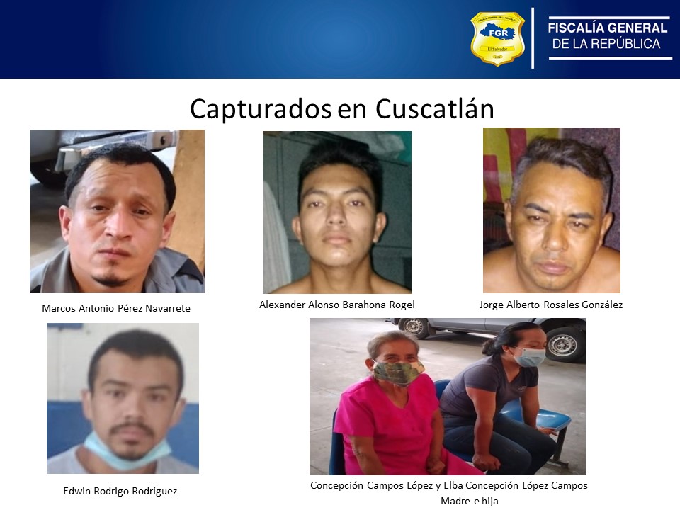 El departamento de Cuscatlán la oficina Fiscal con sede en Cojutepeque informa que, en las últimas horas, se han detenido en los municipios de San Pedro Perulapán, San Ramón, Tenancingo y Cojutepeque a seis personas, de las cuales dos son mujeres, por estar ligados a delitos como Extorsión, Robo Agravado, Estafa y Hurto, de las 12 órdenes giradas.