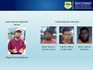En Morazán se capturaron a cuatro hombres, entre ellos, uno de nacionalidad nicaragüense, por los delitos de Violación en Menor e Incapaz, Agresión Sexual en Menor e Incapaz y Acoso Sexual.