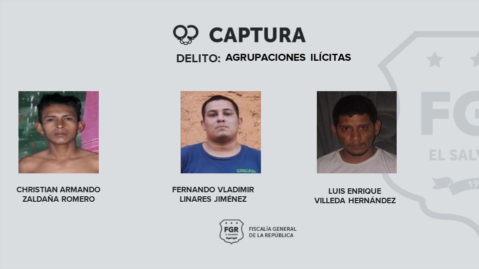 Y entre los 10 detenidos se encuentran cinco “Homeboys”, identificados como: Alexander Fabian Estrada Contreras, Walter Oswaldo Linares Murcia, Carlos Mauricio Magaña Vinueza, Christian Armando Zaldaña Romero y Fernando Vladimir Linares Jiménez; un “chequeo”, Luis Enrique Villeda Hernández, y cuatro colaboradores de la pandilla: Salvador Humberto, Karla María Hernández Cardoza, Jacqueline Marisela Liborio Martínez Y Angela Victoria Velásquez Ascencio.