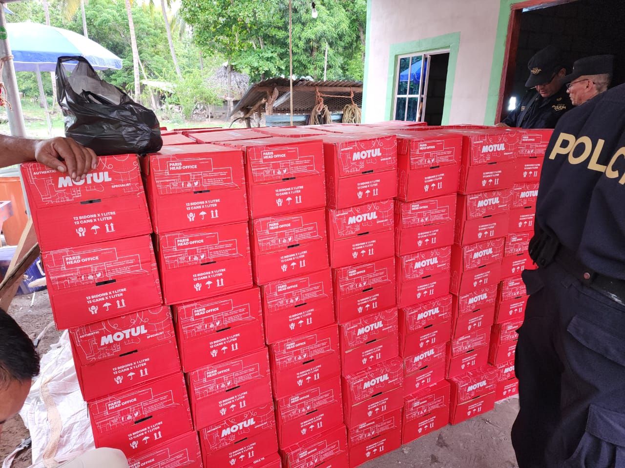 Durante el allanamiento, las autoridades encontraron 200 cajas de cartón, cada una conteniendo 12 litros de aceite para motor de motocicleta, tipo 20W50 para motores de 4 tiempos. De acuerdo a la investigación inicial, la mercadería sería exportada de forma ilegal a través de un punto ciego cerca de la vivienda.