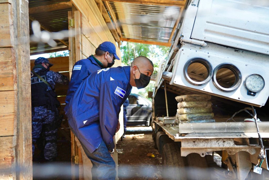 Ellos fueron capturados cuando adecuaban en un camión los paquetes de droga cocaína que se presume sería trasladada hacia Guatemala.