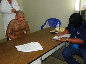 Fiscales de la Unidad Especializada Antipandillas, llegaron hasta los penales de Izalco en Sonsonate y al de Máxima Seguridad en Zacatecoluca, La Paz, para intimar a 47 miembros de estructuras criminales, a quienes se les ha determinado participación en el triple homicidio de un conocido líder de la “Mara Salvatrucha”, así como otros dos miembros, ocurrido el 2016, en el interior de uno