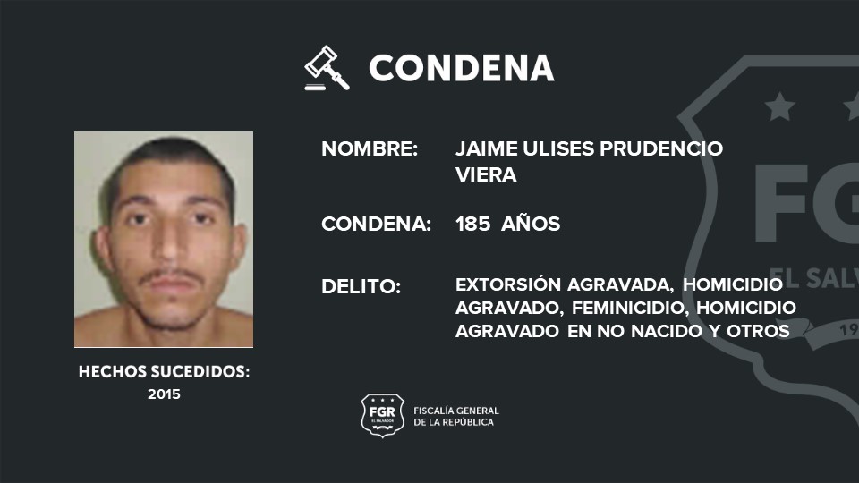 Mientras que al corredor de la clica, Jaime Ulises Prudencio Viera, alias el pantera, le impusieron 185 años de prisión por 2 extorsiones agravadas, 1 caso de tráfico ilícito, 1 homicidio agravado, 1 feminicidio , 1 homicidio en no nacido, intento de homicidio y organizaciones terroristas.