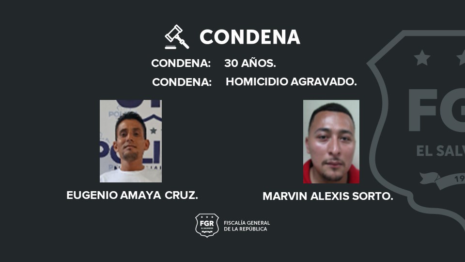 La Unión. Por el homicidio de Juan Antonio Ventura Umanzor, la Fiscalía General de la República (FGR) logró que dos pandilleros de la clica Park View Locos Salvatruchos de la Mara Salvatrucha, fueran condenados a 30 años de cárcel.