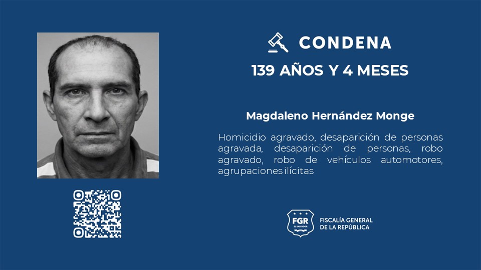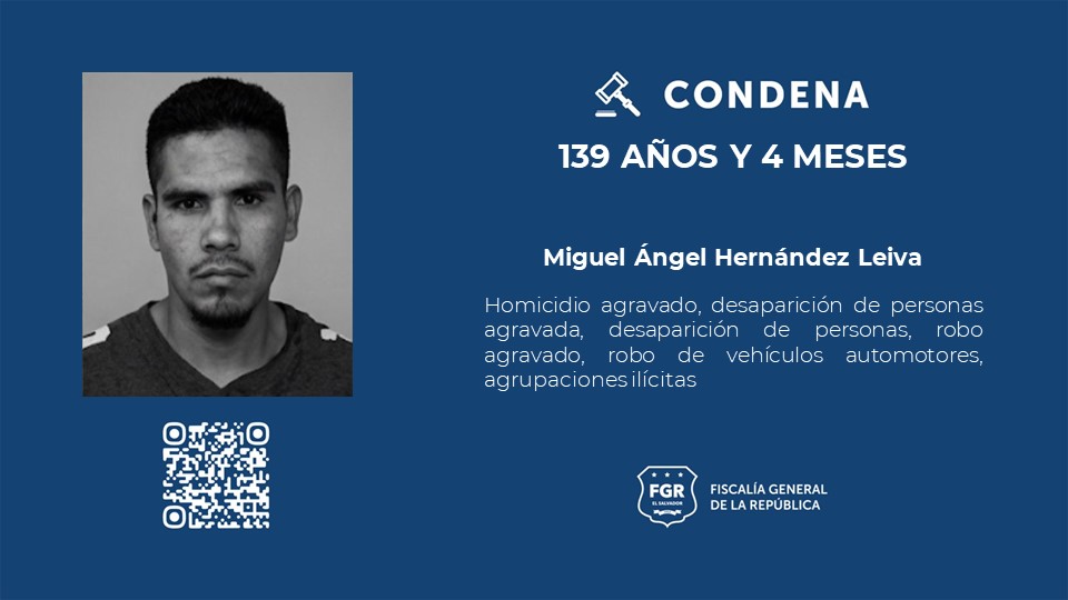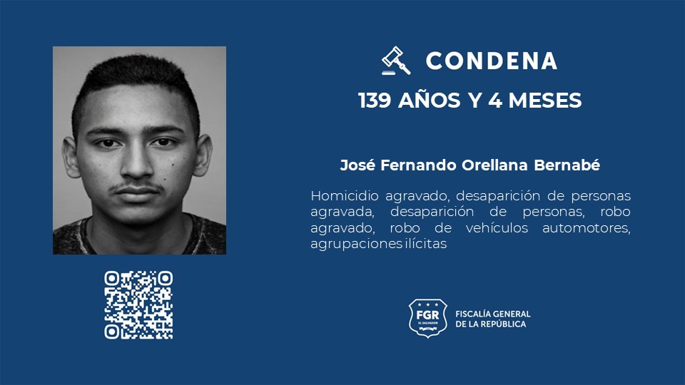 Los imputados condenados a esa pena fueron identificados como José Fernando Orellana Bernabé, Kevin Alexander Martínez Mena, Julio César Hernández Rivera, Miguel Ángel Hernández Leiva, José Alejandro Hernández Leiva y Magdaleno Hernández Monge (ausente).