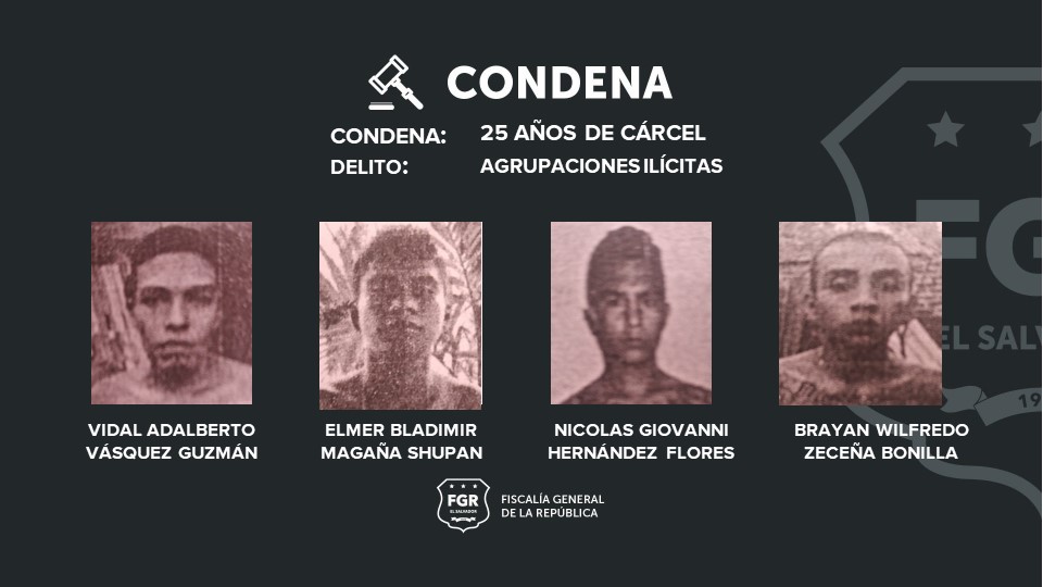 Entre los condenados están: Vidal Adalberto Vásquez Guzmán Elmer Bladimir Magaña Nicolas Geovanni Hernandez Flores Brayan Wilfredo Zeceña Bonilla.