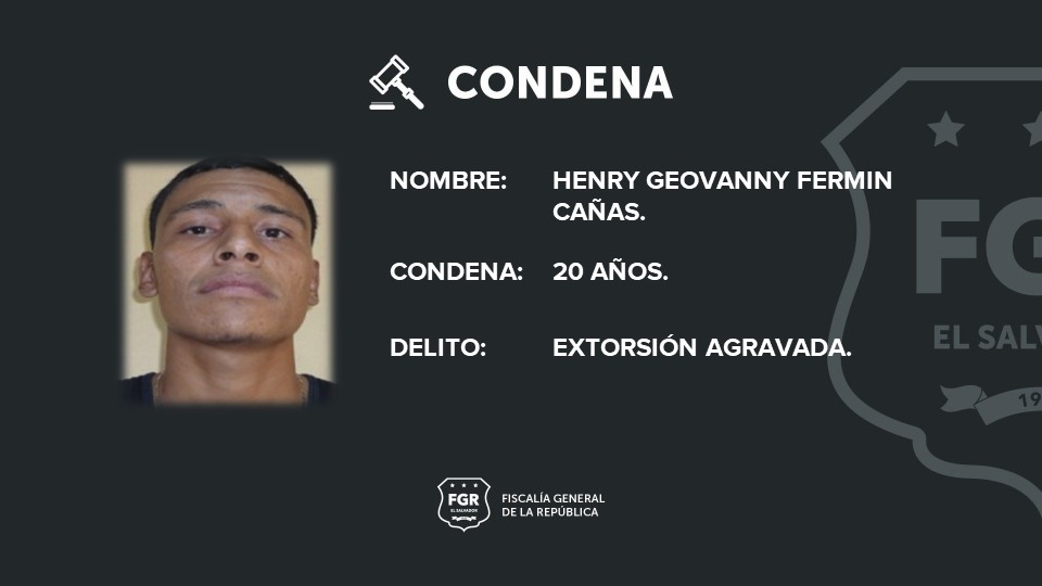 Mario Efraín Membreño Méndez pasará los próximos 100 años en prisión por extorsionar a 5 personas, mientras que Henry Geovanny Fermín Cañas fue sentenciado a 20 años de cárcel por Extorsión Agravada.