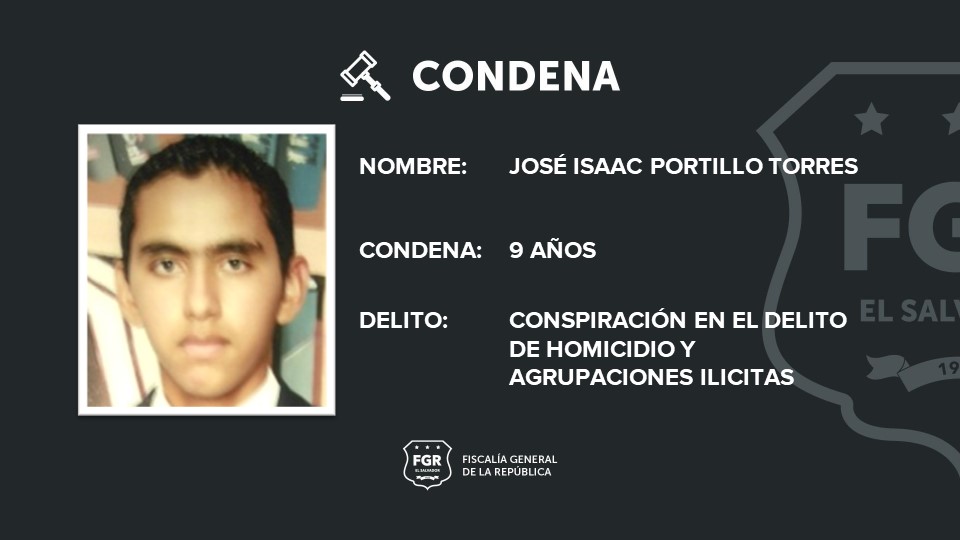 Mientras que José Isaac Portillo Torres parará 9 años de cárcel por Agrupaciones Ilícitas y conspiración en el delito de Homicidio Agravado.