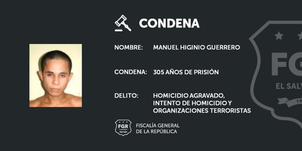 Dentro de los pandilleros que recibieron la mayor cantidad de años de prisión, están: Manuel Higinio Guerrero “Pony”, sentenciado a 305 años de prisión por 15 casos, entre ellos homicidios agravados, intento de homicidios, organizaciones terroristas, hurto y robos.