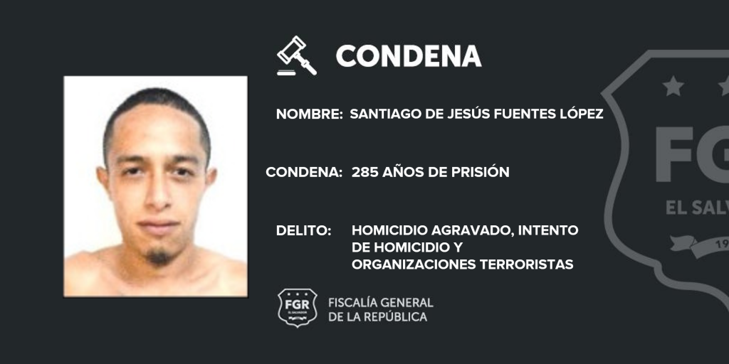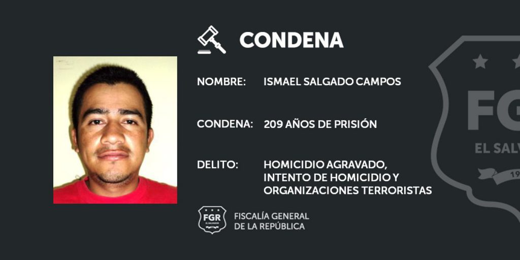 Los otros condenados que tuvieron castigos con altas penas de cárcel son: Santiago de Jesús Fuentes López, alias panal, calidad de homeboy (285 años); Ismael de los Ángeles Salgado Campos, ranflero, (209), José Gustavo Urquilla Bonilla, alias snyper con función de homeboy, (90); Pilander Mauricio Cruz Sorto, alias chino guara con rango de homeboy (90); Miguel Angel Interiano Medina y Nelson Omar Córtez Vigil, homeboy (50 años de cárcel); Carlos Eduardo Jiménez González y José Hernández Luna, (30 años de prisión); José Ricardo Argueta Ramos o Campos, alias frijol o palabrero (29 años de cárcel); José Benedicto Guevara (24 años de cárcel); José Mauricio Sánchez Flores y Luzardo Balmore Torres Cedillos (14 años de prisión).
