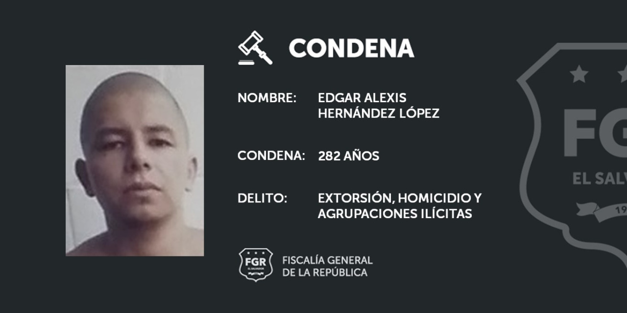 Edgar Alexis Hernández López, líder de la pandilla en Cojutepeque, sentenciado a 282 años de prisión.