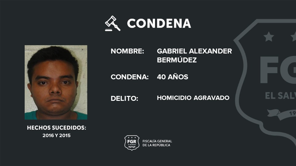 Entre los sentenciados está Luis Armando Nieto, alias el chele nono, quien deberá cumplir una pena de 60 años de prisión por tres homicidios agravados y Gabriel Alexander Bermúdez Melara, alias chendu, fue declarado responsable de dos homicidios agravados y deberá de cumplir una pena de 40 años de cárcel.
