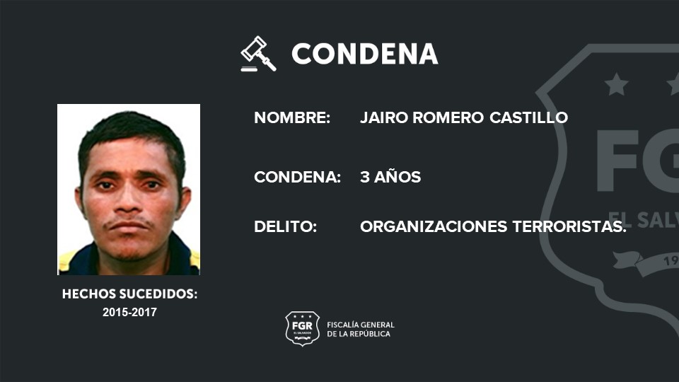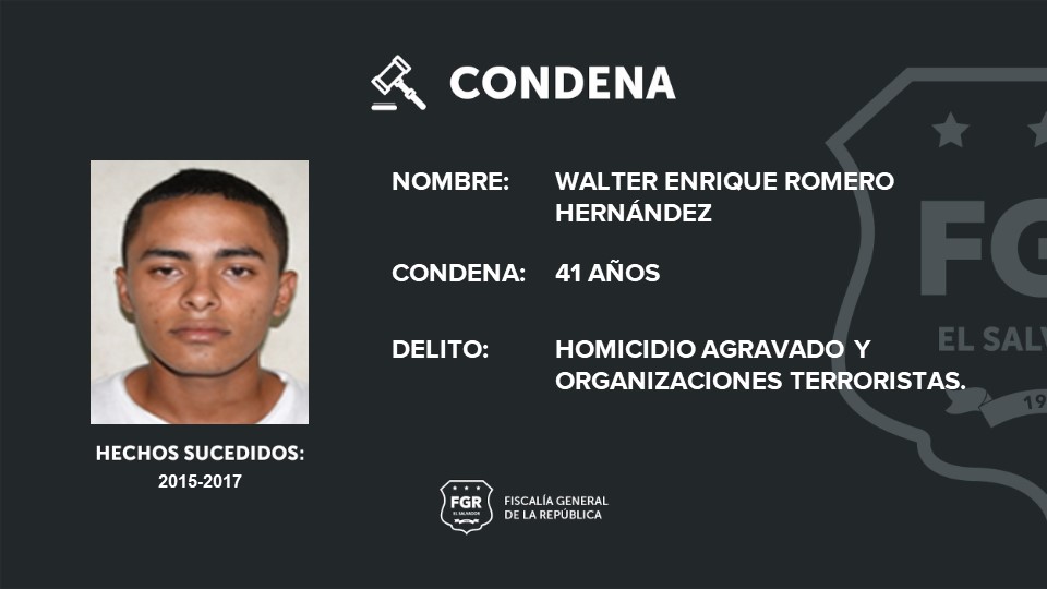 Mientras que Walter Enrique Romero Hernández, alias Tuder y Jónathan Josué Amaya, alias Luck, fueron sentenciados a 41 y 39 años de prisión, respectivamente por un homicidio agravado y organizaciones terrorista.