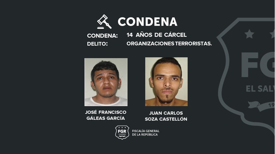 A 14 años fue sentenciado José Francisco Galeas García, alias infierno y Juan Carlos Soza Castellón, alias Fantasma, ambos por organizaciones terroristas y a 3 Jairo Alexis Romero Castillo.