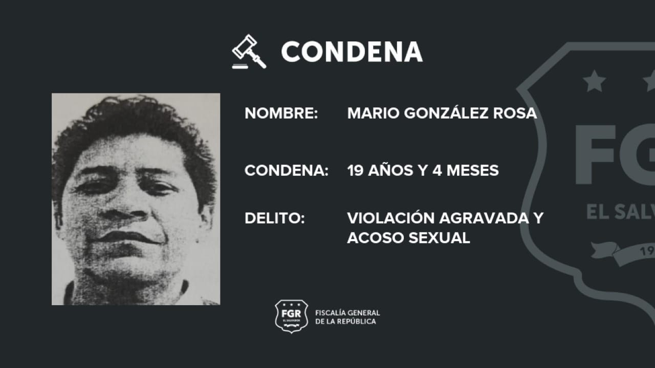 Sonsonate. La Fiscalía General de la República (FGR) en su labor de hacer justicia para víctimas de delitos sexuales, logró condena de 19 años y 4 meses de prisión para Mario González Rosa, por haber abusado sexualmente de dos adolescentes. El imputado también está obligado a pagar $1,000 en concepto de responsabilidad civil.